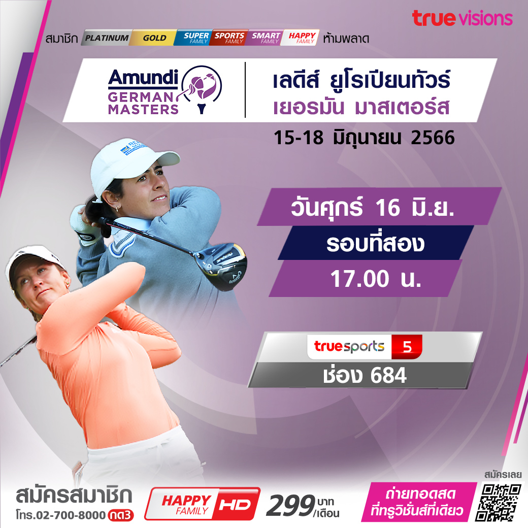 เลดี้ส์ ยูโรเปี้ยน ทัวร์ ฤดูกาล 2023 สัปดาห์นี้ไปชมโปรสาวจากทั่้วโลกประชันความสามารถกันที่ประเทศเยอรมนีกับรายการ เยอรมัน มาสเตอร์ส ที่สนาม กอล์ฟ แอนด์ คันทรี่ คลับ เซ็ดดิเนอร์ ซี ชมสดครบทั้ง 4 วัน ชมสด ทาง ทรูวิชั่นส์ ที่เดียว