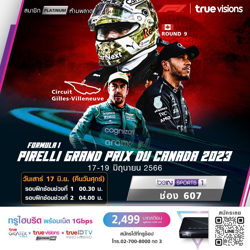 ยิ่งแข่ง ยิ่งเดือด กับกีฬาความเร็วอันดับ 1 ของโลกตลอดกาล ฟอร์มูล่า วัน เวิลด์ แชมเปี้ยนชิพ ฤดูกาล 2023 สัปดาห์นี้ เป็นสนามที่ 9 ข้ามทวีปไปวัดพลังกันที่ประเทศแคนาดา กับรายการ แคนาเดียน กรังด์ปรีซ์ ที่สังเวียน ชิลส์ วิลเนิร์ฟ เซอร์กิต ใครจะเร็วสุด ใครจะขึ้นโพเดี้ยม ลุ้นกันสดๆครบทุกช่วง ชมสด ทาง ทรูวิชั่นส์ ที่เดียว