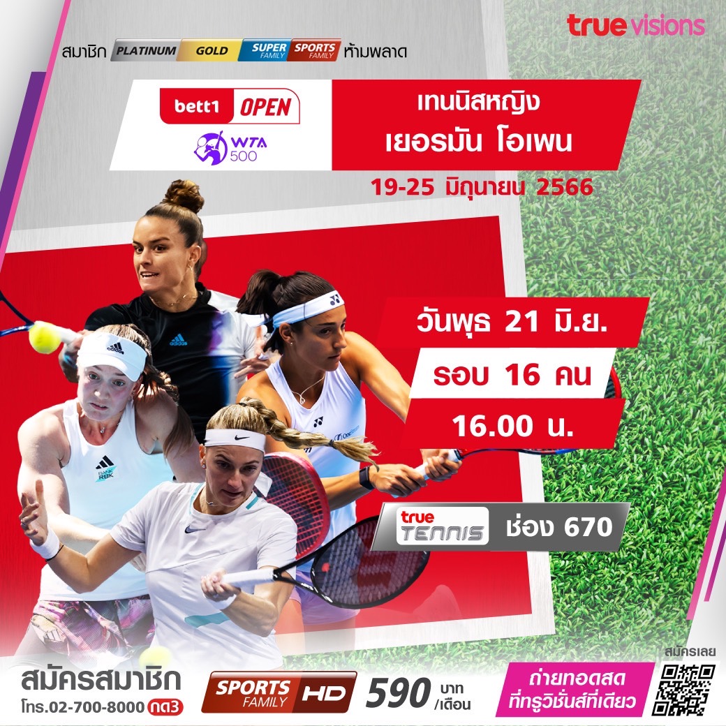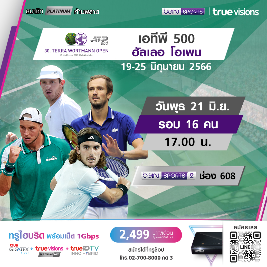 วันนี้มีอะไรดูที่ ทรูวิชั่นส์ ประจำวันพุธที่ 21 มิถุนายน 66 วันนี้ยังมีศึกเทนนิส เอทีพี ทัวร์ รายการ ฮัลเลอ โอเพ่น และ ดับเบิ้ลยูทีเอ ทัวร์ รายการ เยอรมัน โอเพ่น งานนี้ ทรูวิชั่นส์ จัดเต็มให้ชมกันถึงบ้าน