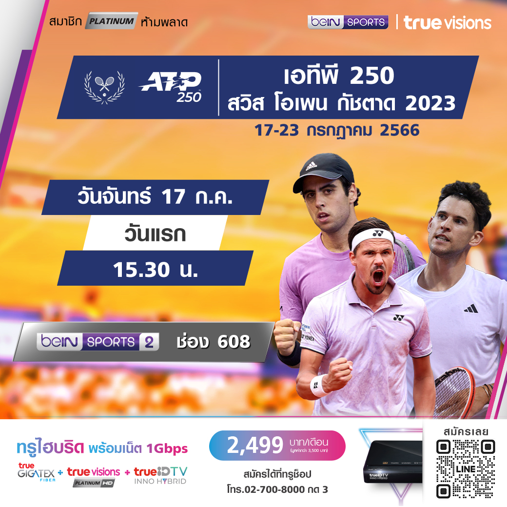 กลับมาสู่บรรยายกาศของการดวลแร็คเก็ตจากสุดนักเทนนิสชายของ เอทีพี ทัวร์ บนคอร์ตดินในทวีปยุโรปอีกครั้ง ร่วมลุ้นและเชียร์ การต่อสู้เพื่อตำแหน่งแชมป์ รายการ สวิส โอเพ่น กัชตาด 2023 สดจุใจ ทาง ทรูวิชั่นส์