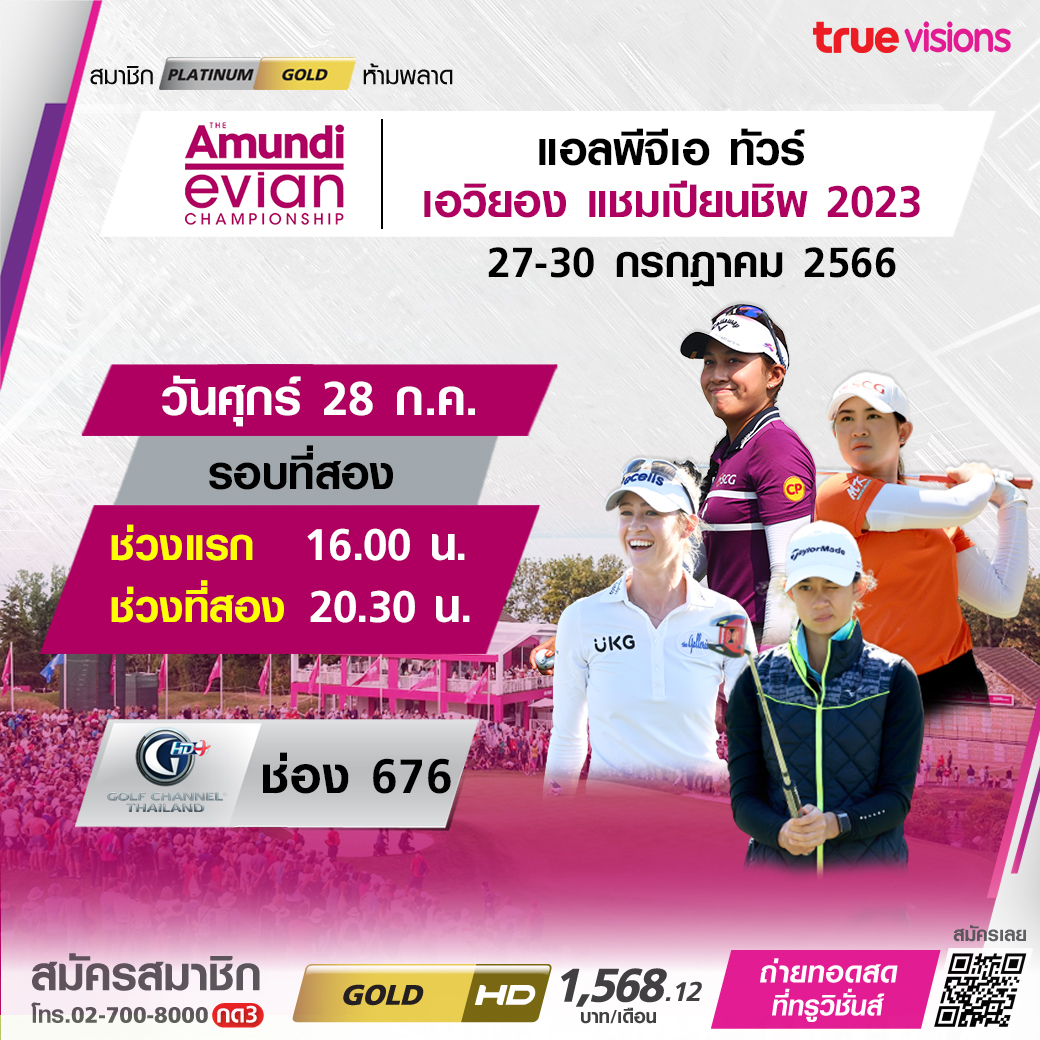 กอล์ฟหญิง แอลพีจีเอ ทัวร์ รายการใหญ่ระดับเมเจอร์ที่ 4 ของปี เอวิยอง แชมเปี้ยนชิพ 2023 ที่ประเทศฝรั่งเศส ชมโปรแถวหน้าของโลกและเชียร์โปรสาวไทยให้สร้างประวัติศาสตร์คว้าแชมป์รายการนี้เป็นครั้งแรก ชมสด ครบทุกรอบ ทาง ทรูวิชั่นส์