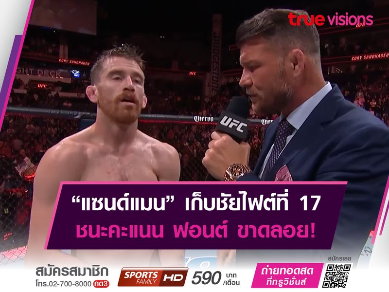 "แซนด์แมน" โครี แซนด์ฮาเกน ยอดนักสู้ชาวสหรัฐฯ เดินหน้าคว้าชัยเป็นไฟต์ที่ 17 บนสังเวียน "UFC" หลังเอาชนะ ร็อบ ฟอนต์ จอมเก๋าชาวปอร์โตริโก ไปแบบสุดมันส์! ในรายการ "UFC FIGHT NIGHT :SANDHAGEN VS FONT" เมื่อเช้าที่ผ่านมา