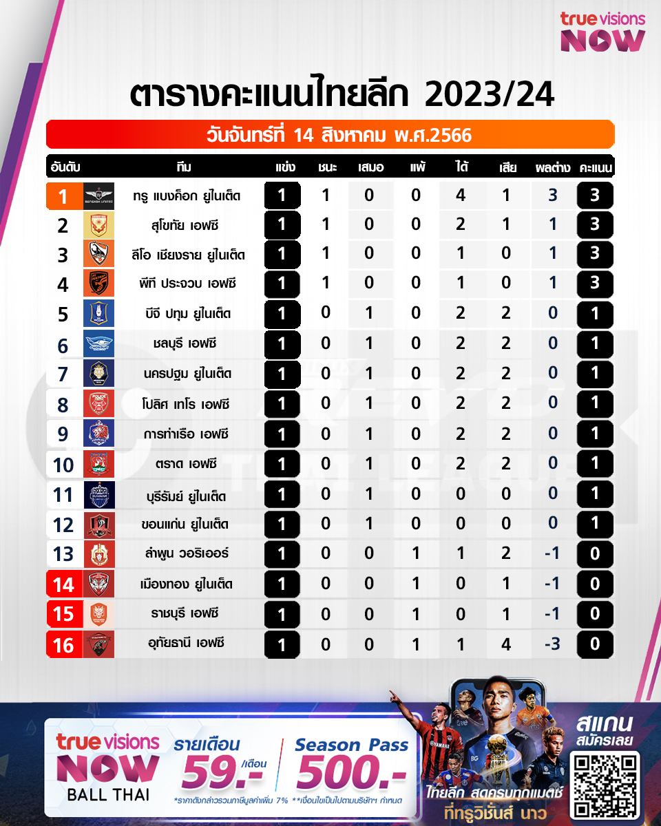 การแข่งขันฟุตบอลไทยลีก1 เกมมันเดย์ไนท์ วันจันทร์ที่ 14 สิงหาคม 2566 มีคิวลงสนาม 1 คู่ ระหว่าง ลำพูน วอร์ริเออร์ เปิดบ้านรับการมาเยือน สุโขทัย เอฟซี