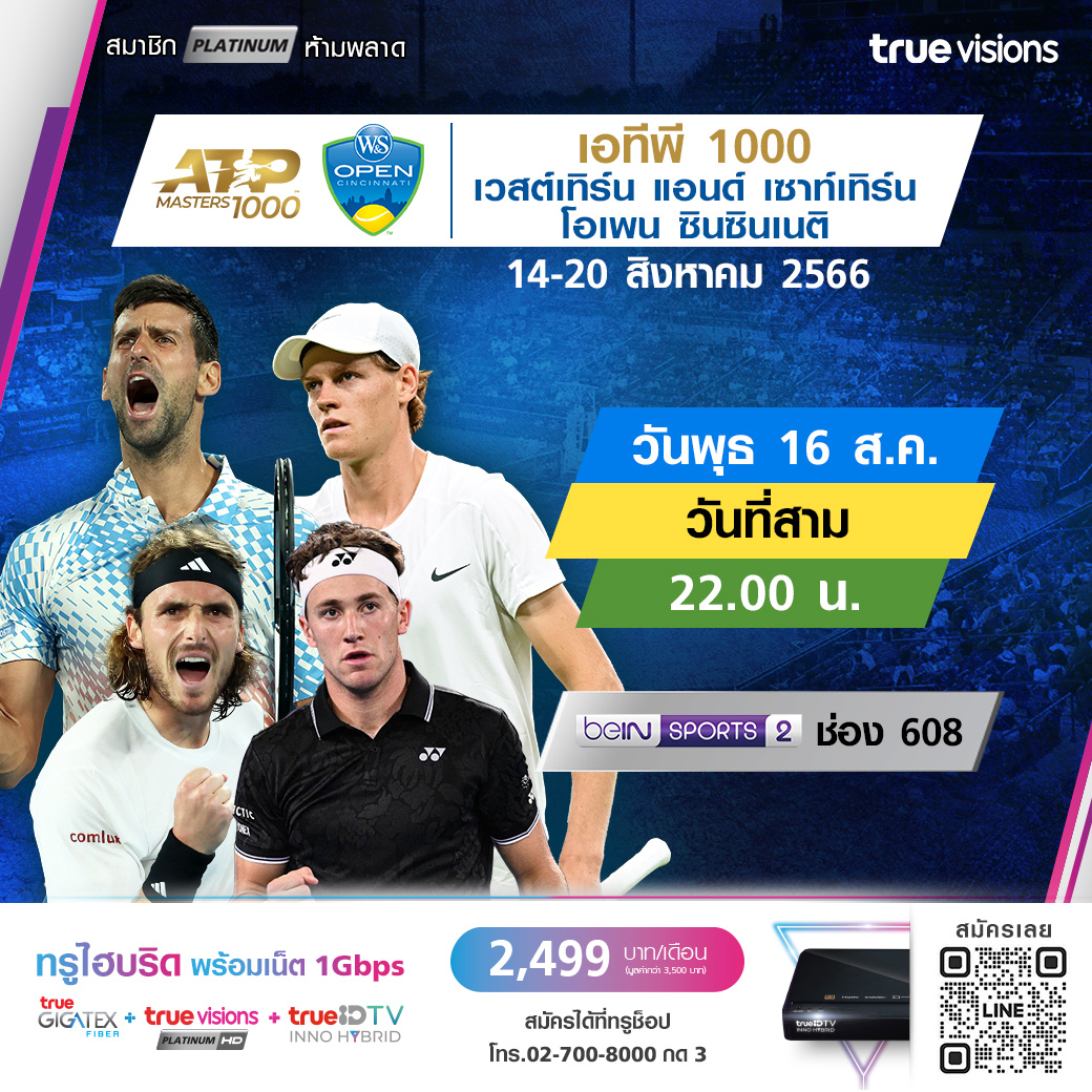 เทนนิสชายระดับโลก เปิดฉากลุยกันต่อกับความยิ่งใหญ่ของ เอทีพี เวิลด์ ทัวร์ ระดับมาสเตอร์ส 1000 รายการที่ 7 ของฤดูกาล เวสเทิร์น แอนด์ เซาเธิร์น โอเพ่น 2023 ที่ซินซินเนติ รัฐโอไฮโฮ สหรัฐอเมริกา ชิงเงินรางวัลรวมมหาศาล 7.6 ล้านเหรียญสหรัฐฯ มือท็อปๆ ของโลกไปดวลกันแบบคับคั่ง ชมสดตั้งแต่รอบแรกถึงรอบชิงชนะเลิศวันที่สาม เวลา 22.00 ทางช่อง beIN Sports 2 (608)