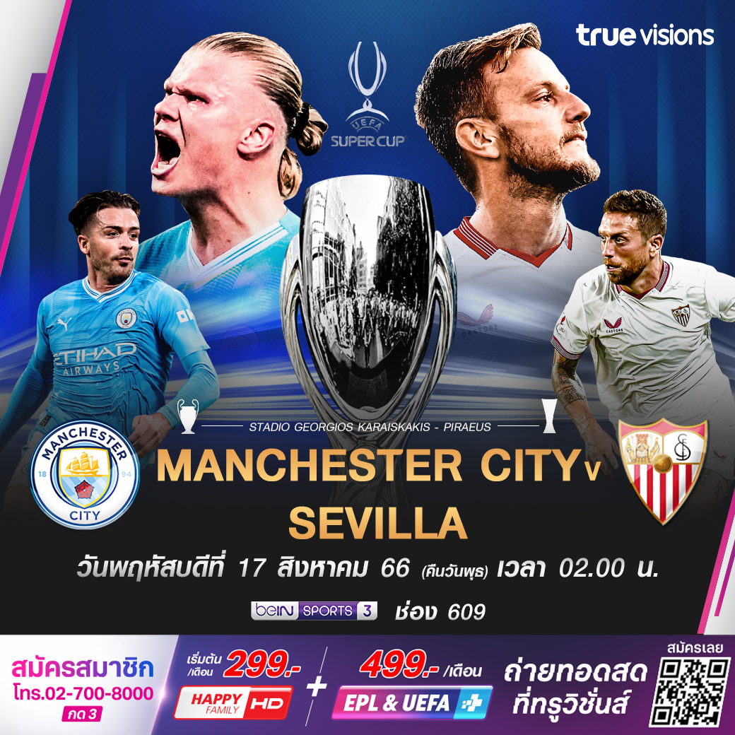Man City vs Sevilla เวลา 02.00-04.00 ทางช่อง beIN 3 (609)