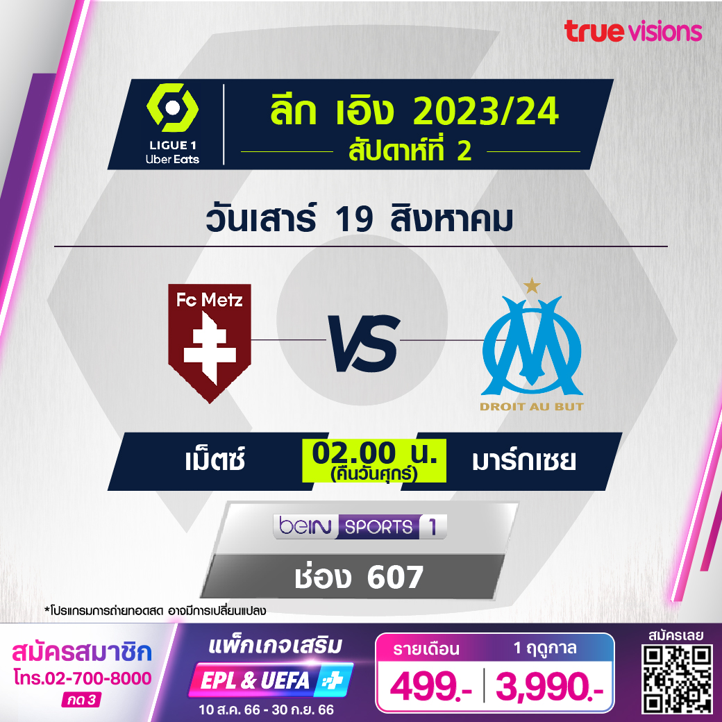 Metz vs Marseille เวลา 02.00-04.00 ทางช่อง beIN 1 (607)
