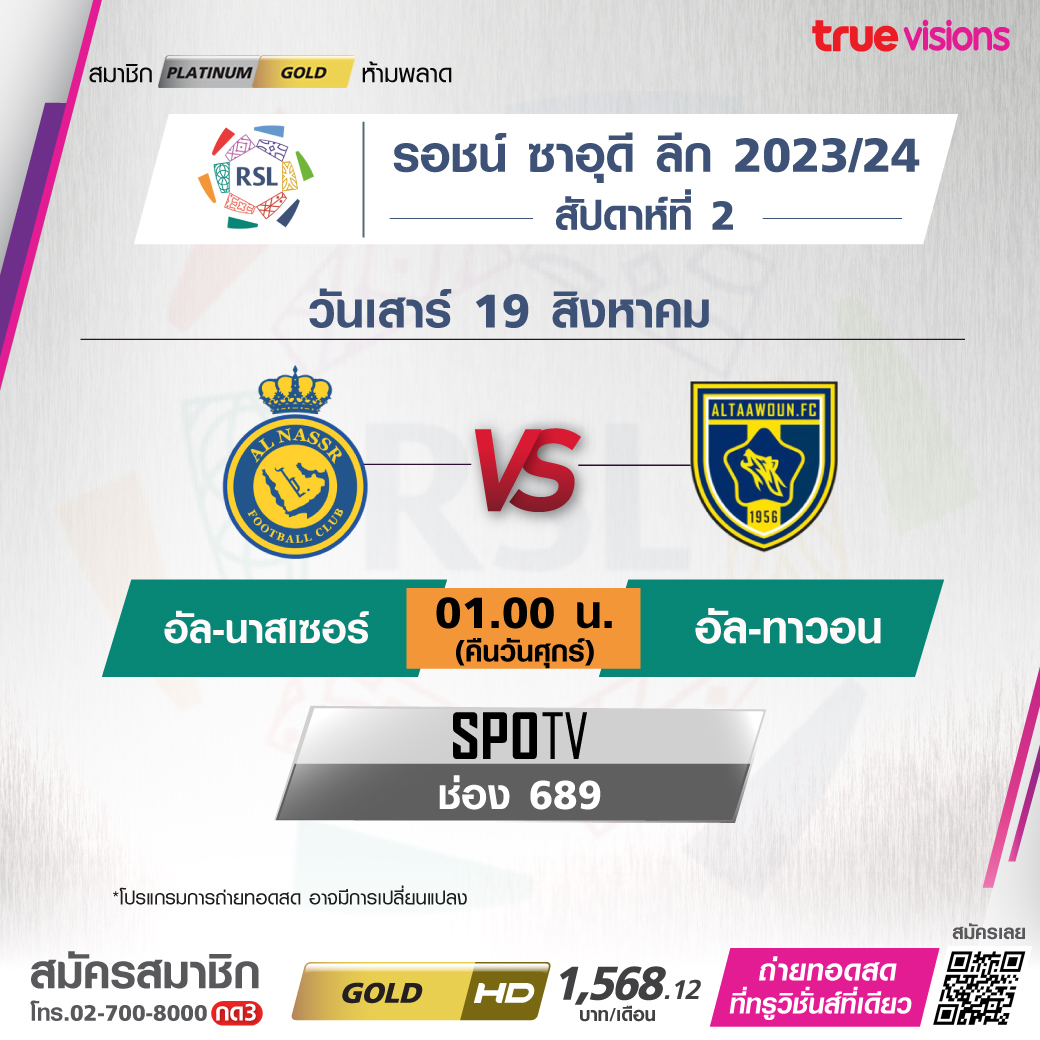 Al-Nassr vs AL-Taawoun เวลา 01.00-03.00 ทางช่อง SPOTV (689)