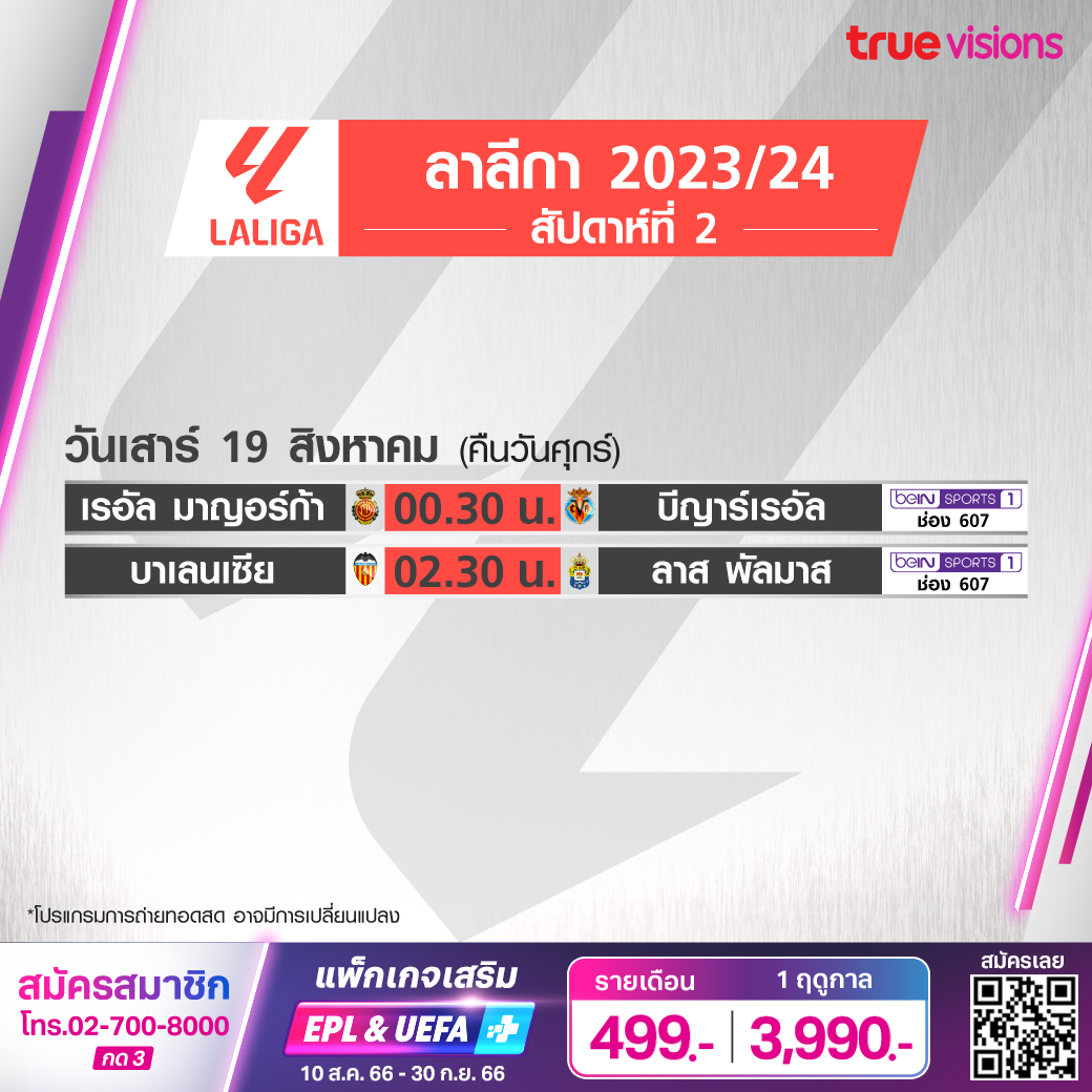 Mallorca vs Villarreal เวลา 00.30-02.30 ทางช่อง beIN 1 (607)