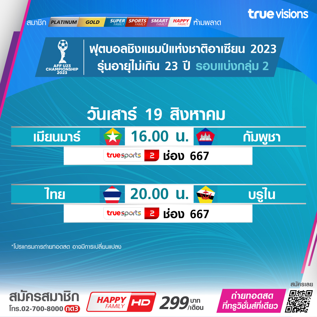 Thailand vs Brunei DS เวลา 20.00-22.00 ทางช่อง TS 2 (667)