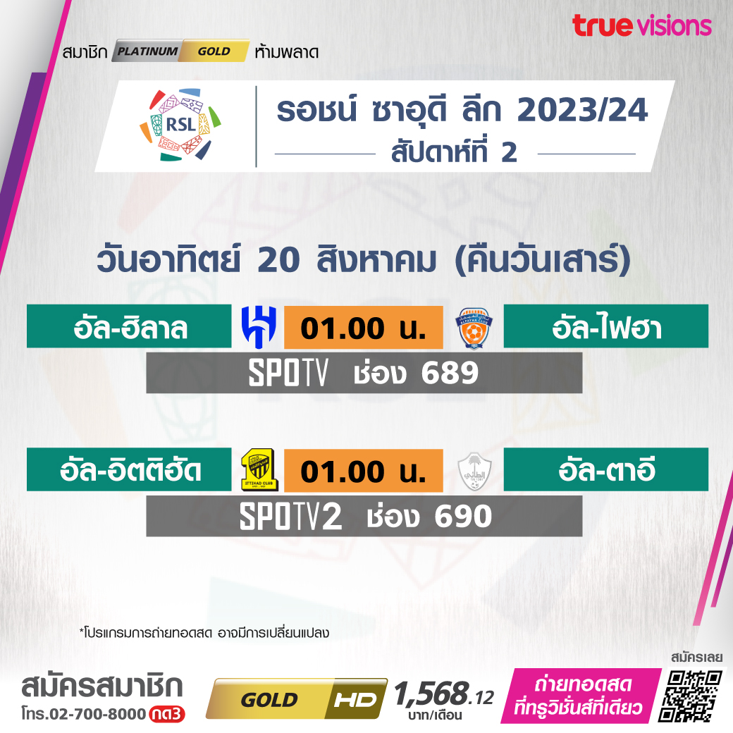 Al-Ittihad vs Al-Tai เวลา 01.00-03.00 ทางช่อง SPOTV 2 (690)