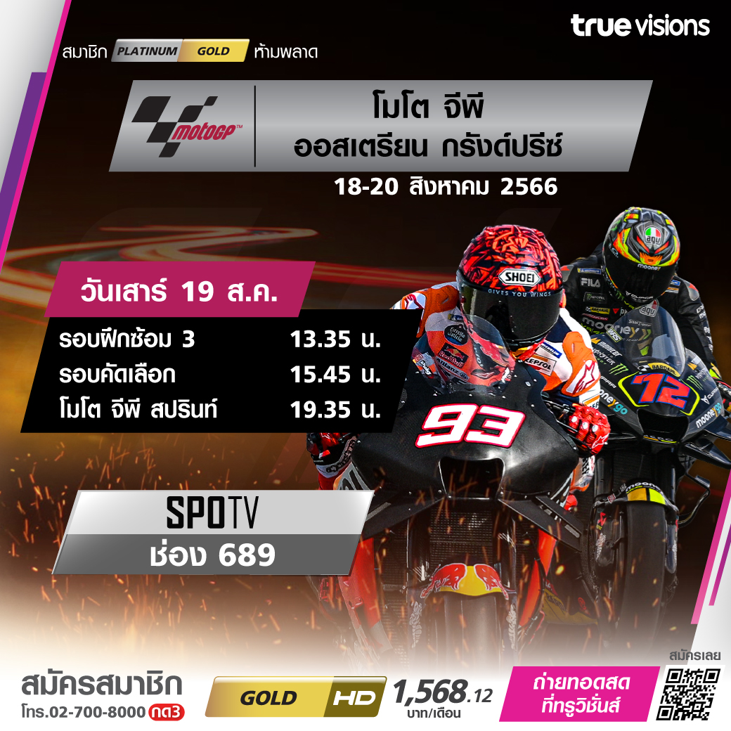 การแข่งขันมอเตอร์ไซค์ชิงแชมป์โลก โมโต จีพี เวิลด์ แชมเปี้ยนชิพ สัปดาห์นี้เดินทางมาถึงสนามที่ 10 ที่เป็นครึ่งทางของฤดูกาล 2023 กับ รายการ ออสเตรียน กรังด์ปรีซ์ สังเวียนสุดท้าทายสำหรับนักบิดทุกทีมอย่าง เร้ดบูล ริง เซอร์กิต ประเทศออสเตรีย ชมสดจุใจครบทุกช่วง ในทุกรุ่น โมโต3, โมโต2 และ โมโต จีพี ชมสด ทาง ทรูวิชั่นส์