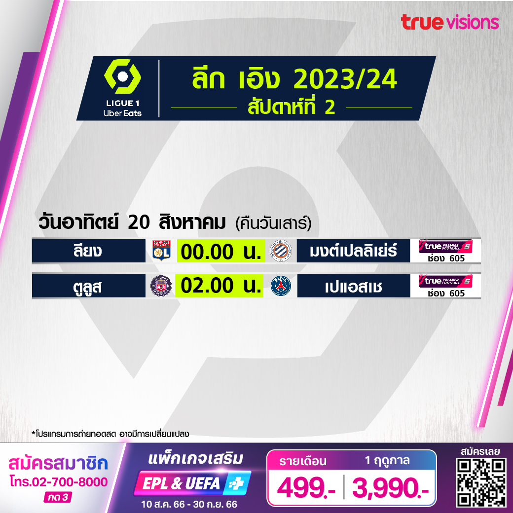 Toulouse vs PSG เวลา 02.00-04.00 ทางช่อง TPF 5 (605)