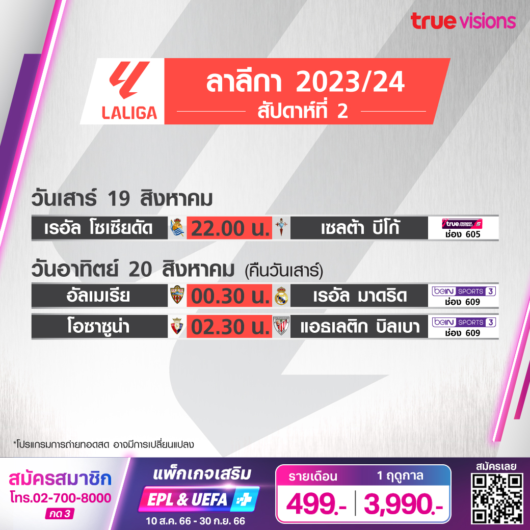 Sociedad vs Celta เวลา 22.00-00.00 ทางช่อง TPF 5 (605)