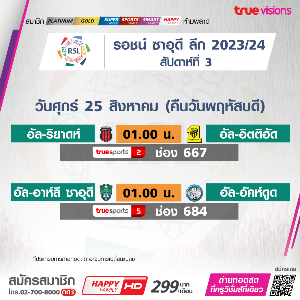 Al-Riyadh vs Al-Ittihad เวลา 01.00-03.00 ทางช่อง TS 2 (667)
