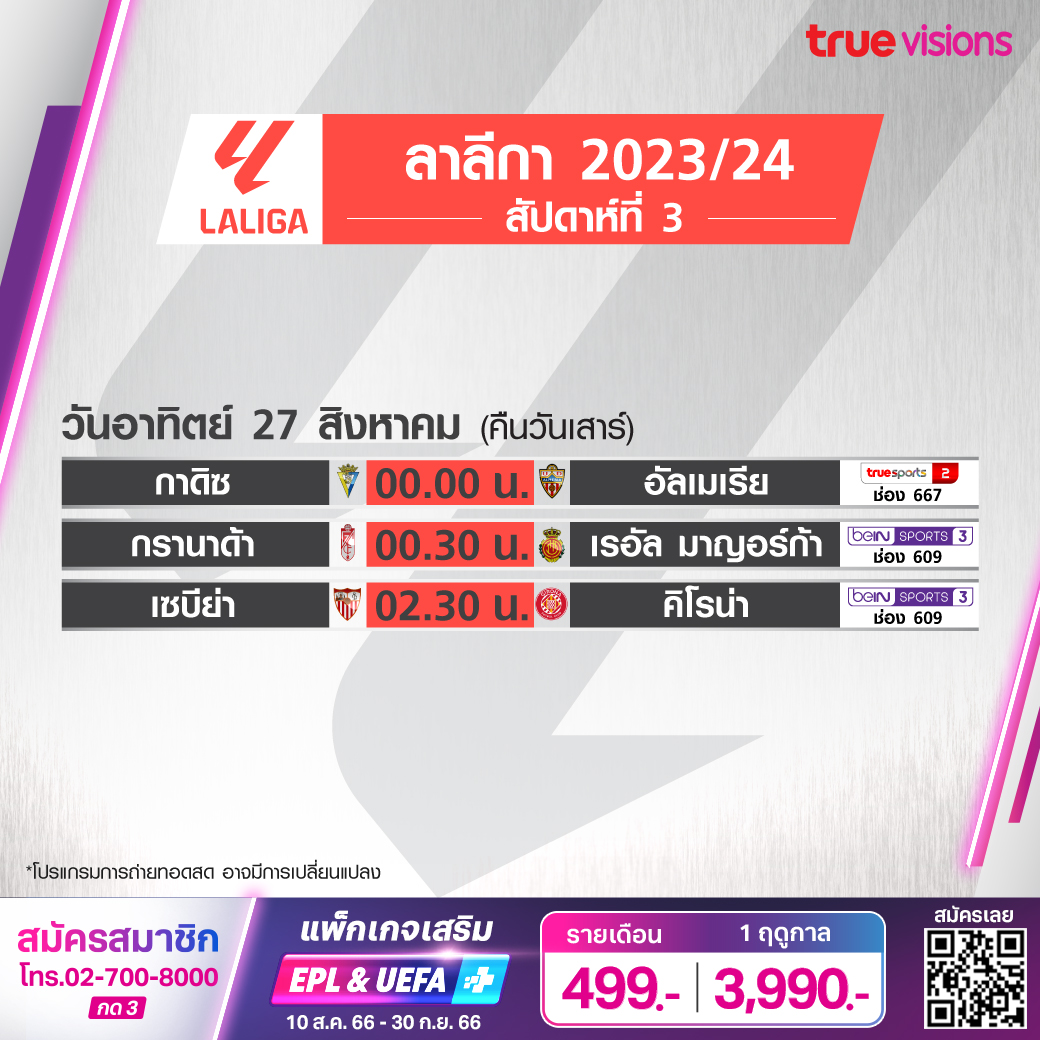 Sevilla vs Girona เวลา 02.30-04.30 ทางช่อง beIN 3 (609)