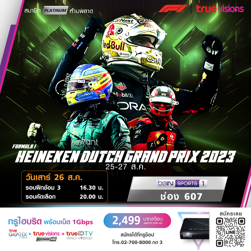 เฟอร์มูล่า วัน เวิลด์ แชมเปี้ยนชิพ สัปดาห์นี้เป็นสนามที่14 ของฤดูกาล 2023 ไปกันที่แดนกังลม เนเธอร์แลนด์ กับรายการ ดัตช์ กรังด์ปรีซ์ ที่สนามซันด์โฟร์ท เซอร์กิต จับตาดู แม็กซ์ เวอร์สแท็ปเพ่น กับการแข่งขันโฮม เรซ จะปล่อยให้แชมป์หลุดมือหรือไม่ ชมกันสดๆ เอ็กซ์คลูซีฟ ชมสด ทาง ทรูวิชั่นส์ ที่เดียว