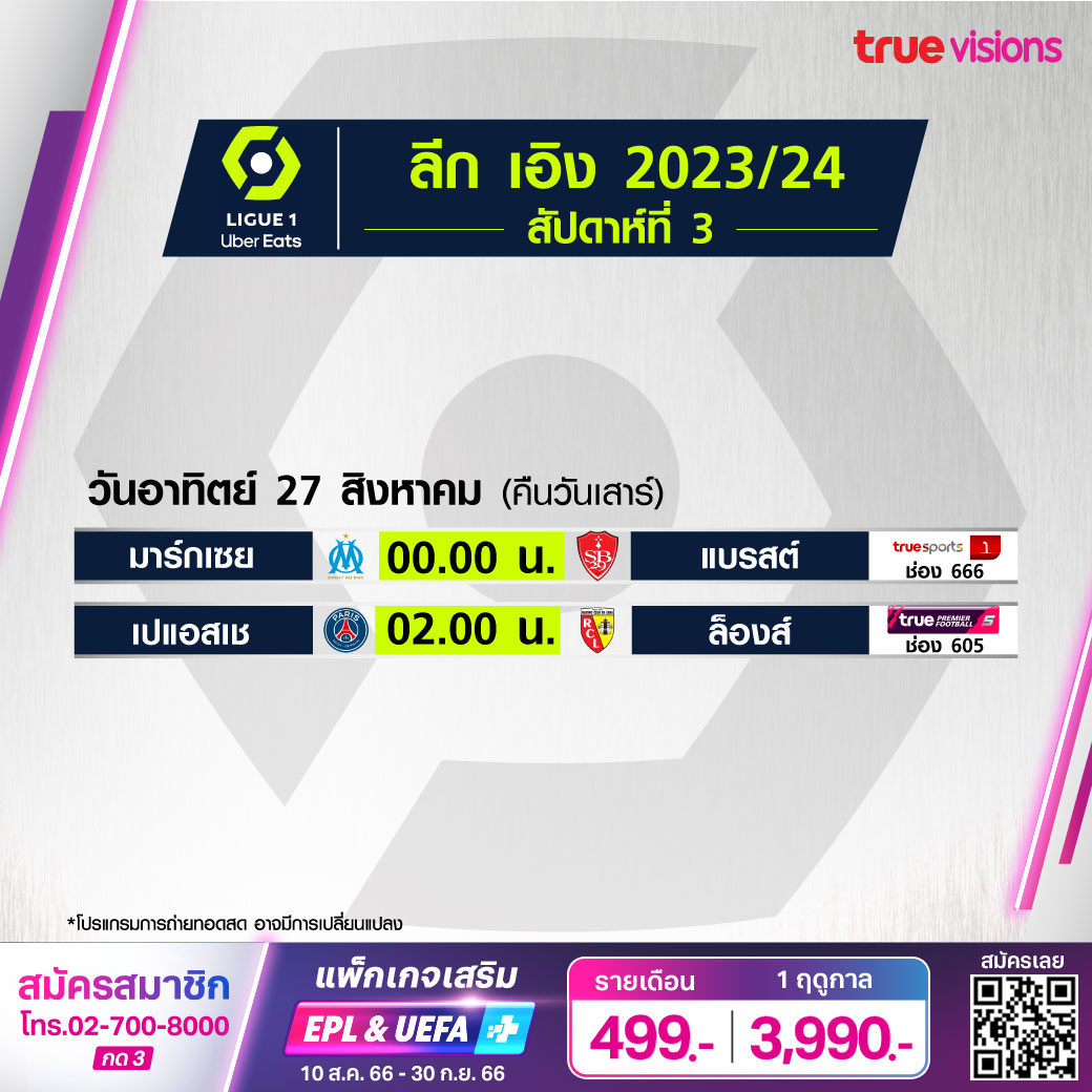 PSG vs Lens เวลา 02.00-04.00 ทางช่อง TPF 5 (605)