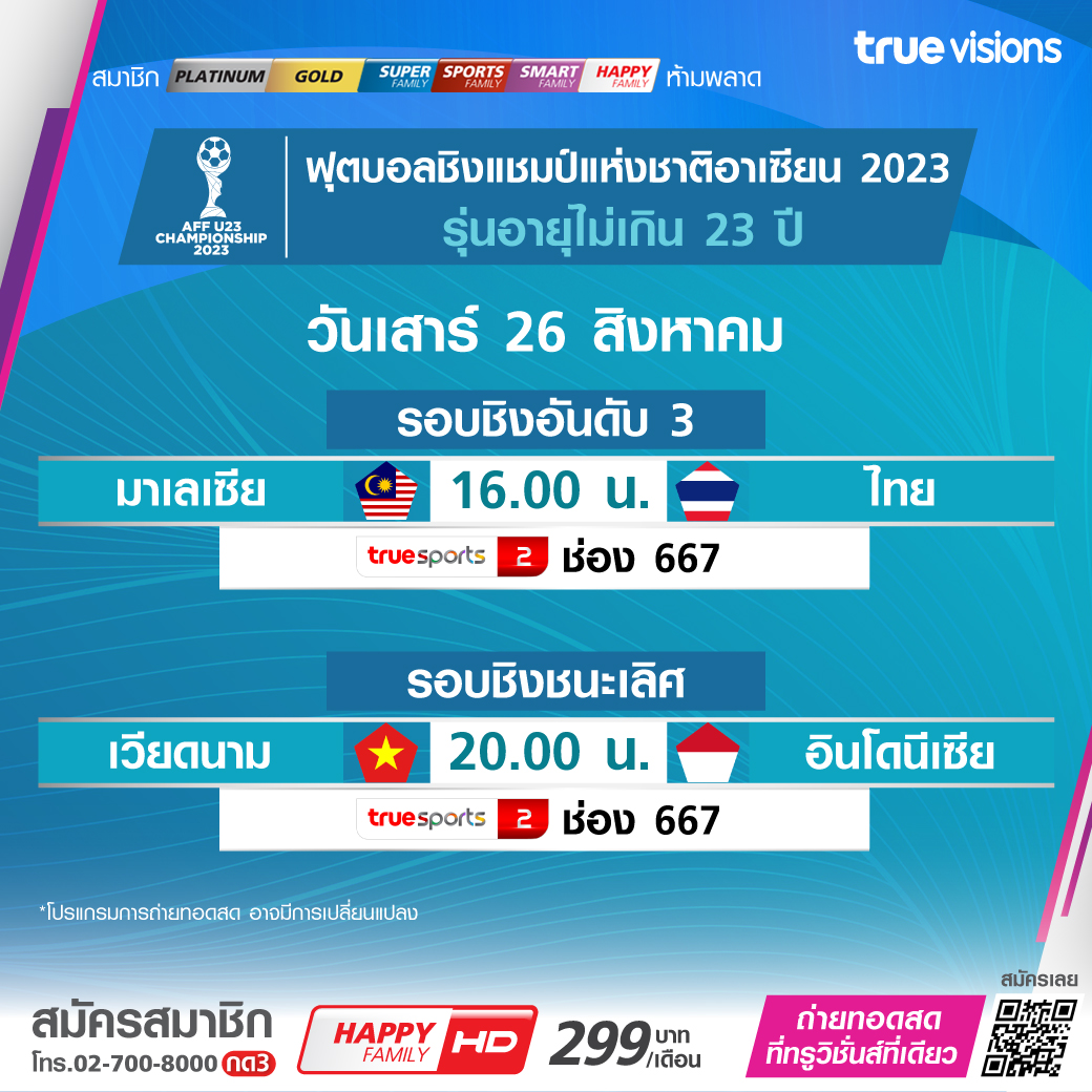 Malaysia vs Thailand (3rd) เวลา 16.00-18.00 ทางช่อง TS 2 (667)