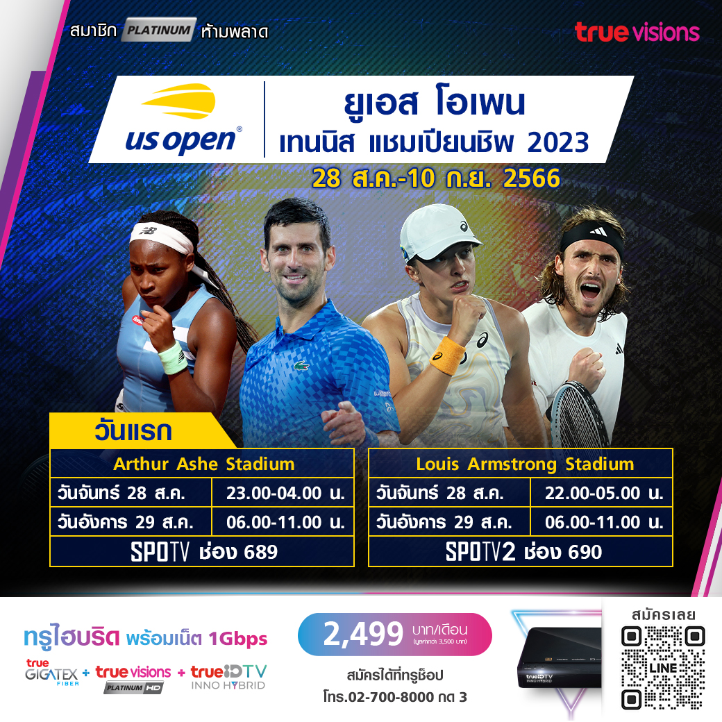 การรอคอยของแฟนๆ สิ้นสุดลงแล้ว เมื่อเทนนิสแกรนด์สแลมสุดยิ่งใหญ่ของปีเดินทางมาถึง กับรายการ ยูเอส โอเพ่น เทนนิส แชมเปี้ยนชิพ 2023 ที่มหานครนิวยอร์ค สหรัฐอเมริกา เวทีที่นักเทนนิสที่เก่งที่สุดของโลกมาประชันฝีมือกันแบบครบทั้งชายและหญิง ใครจะเป็นแชมป์ปิดท้ายปี ลุ้นและชมสดๆ แบบเอ็กซ์คลูซีฟ ทาง ทรูวิชั่นส์ ที่เดียว