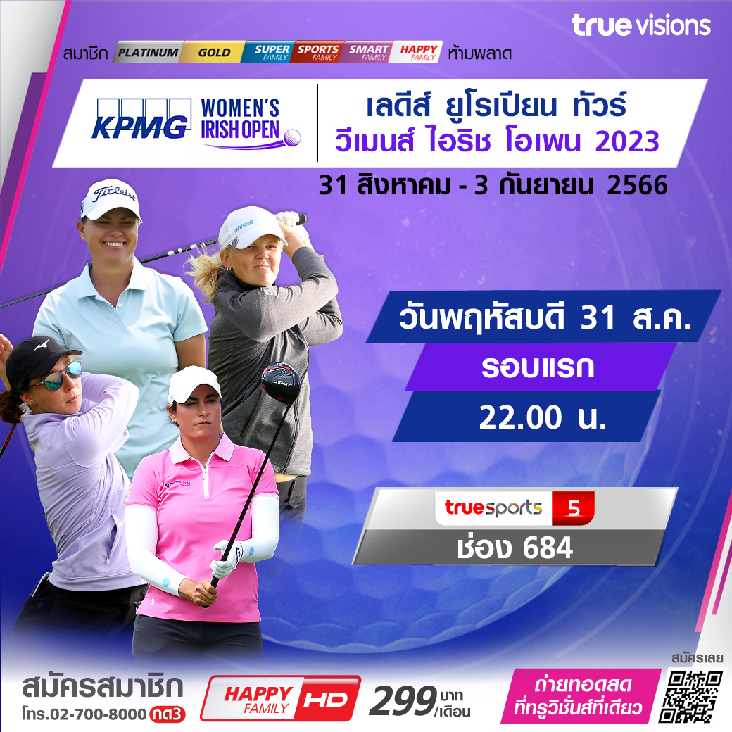 แฟนๆ กีฬากอล์ฟหญิง ติดตามกันต่อกับ เลดี้ส์ ยูโรเปี้ยน ทัวร์ ฤดูกาล 2023 ที่กำลังสนุกเข้มข้น สัปดาห์นี้ ไปชมการแย่งแชมป์ในดินแดนไอริช กับรายการสำคัญ วีเมนส์ ไอริช โอเพ่น ที่สนาม โดรโมแลนด์ คาสเซิ่ล ประเทศไอร์แลนด์ ร่วมลุ้นกันว่าโปรสาวคนใดจะเป็นแชมป์ในปีนี้ ชมสด