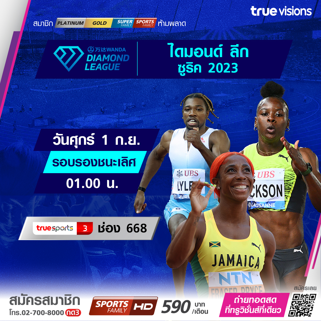 ความเข้มข้นมากขึ้นทุกขณะเมื่อมาถึงช่วงท้ายของฤดูกาล สำหรับการแข่งขันกรีฑาระดับโลก ไดมอนด์ ลีก 2023 สนามที่ 11 ซูริค สวิตเซอร์แลนด์ ชมลีลาของบรรดาซูเปอร์สตาร์ขวัญใจของแฟนๆ เพื่อเป็นเจ้าความเร็วทั้งชายและหญิง จากประเภทลู่และลาน เชือดเฉือนกันเพื่อตำแหน่งแชมป์ สด เอ็กซ์คลูซีฟ ที่ ทรูวิชั่นส์