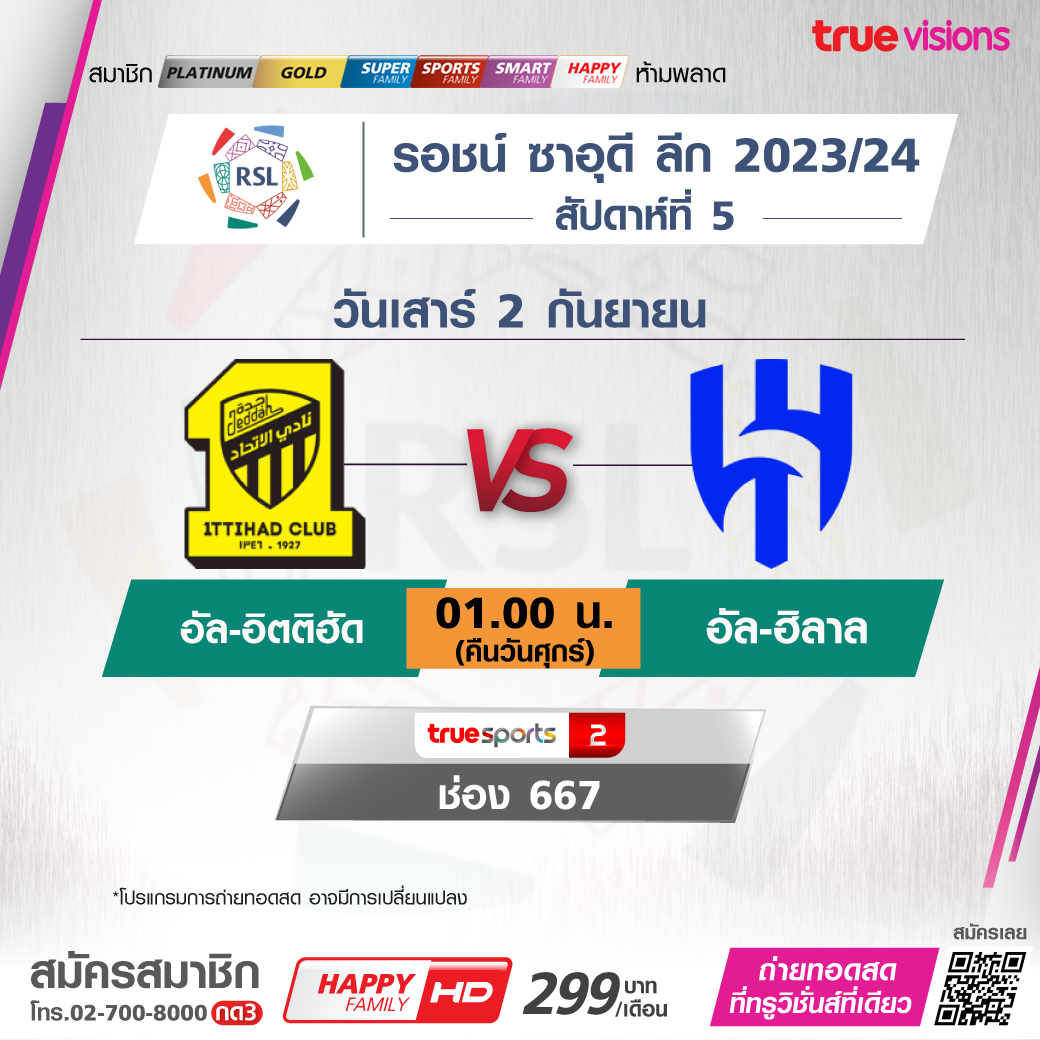 Al-Ittihad vs Al-Hilal เวลา 01.00-03.00 ทางช่อง TS 2 (667)