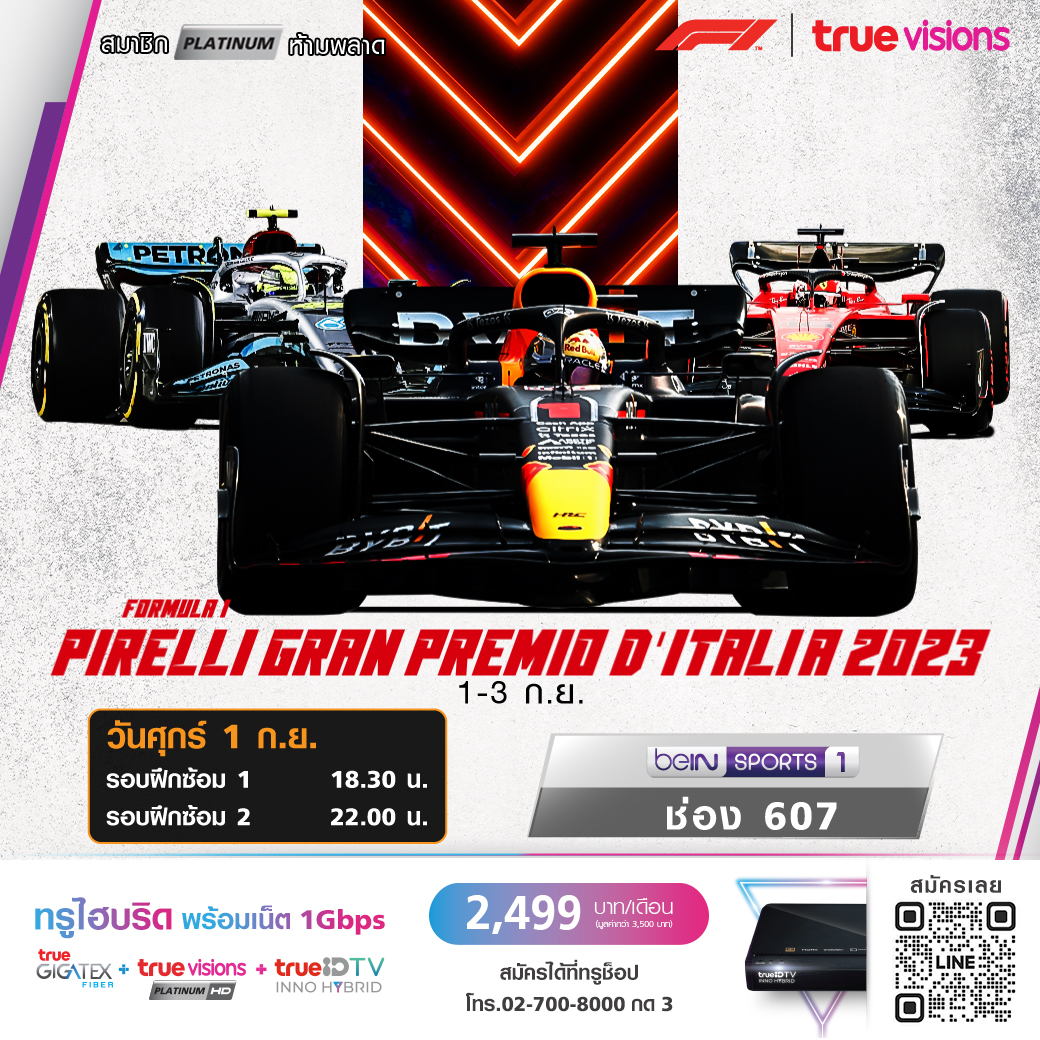 แฟนๆ ต้องไม่พลาด เมื่อการชิงชัย ฟอร์มูล่า วัน เวิลด์ แชมเปี้ยนชิพ เดินทางมาถึงสนามที่ 15 ของฤดูกาล 2023 กับรายการที่ยิ่งใหญ่และเป็นสังเวียนระดับตำนานของวงการ อิตาเลียน กรังด์ปรีซ์ ที่ มอนซ่า เซอร์กิต ประเทศอิตาลี สดเอ็กซ์คลูซีฟ ทุกช่วงสำคัญ ทั้งรอบฝึกซ้อม, ควอลิฟายด์, สปรินท์เรซ และรอบแข่งขัน ลุ้นกันว่าใครจะขึ้นโพเดี้ยมในเรซนี้