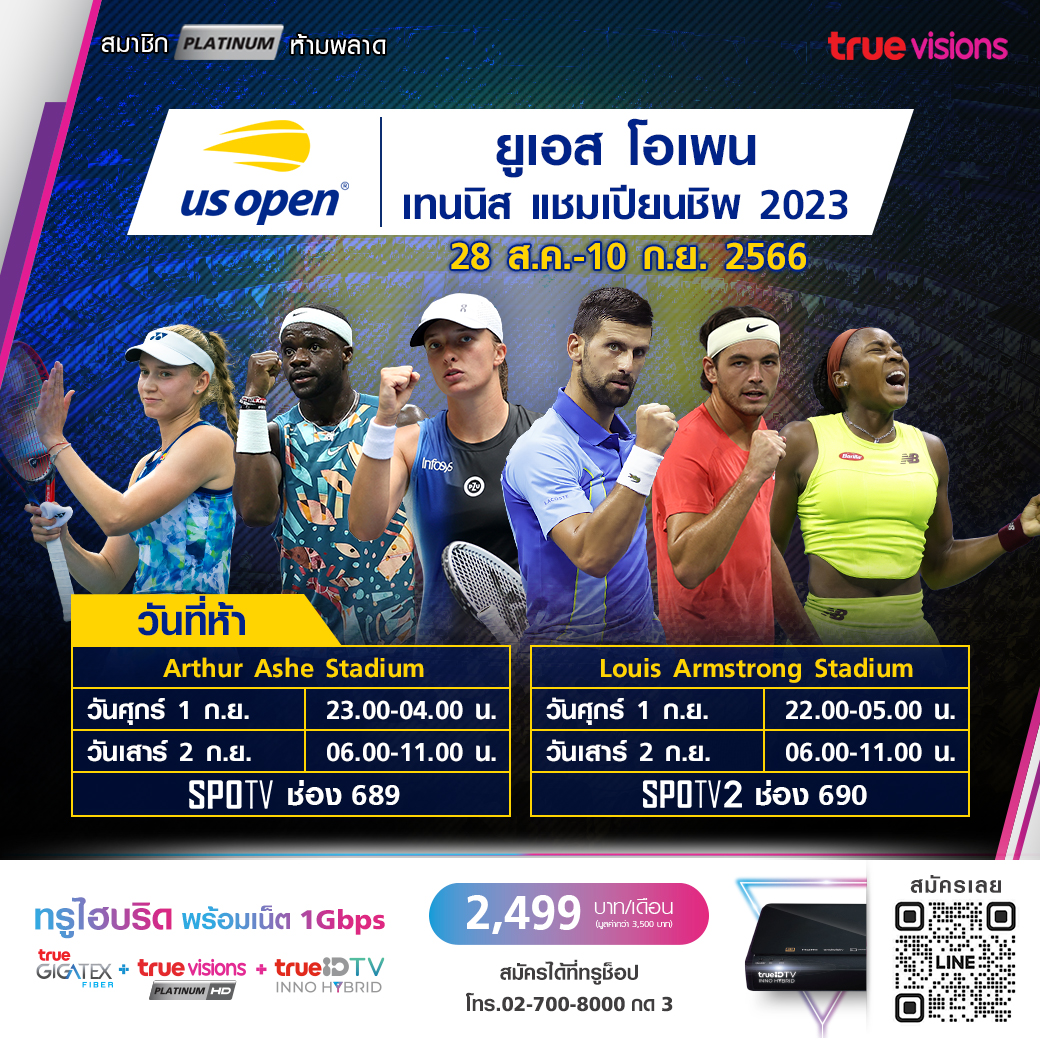 การรอคอยของแฟนๆ สิ้นสุดลงแล้ว เมื่อเทนนิสแกรนด์สแลมสุดยิ่งใหญ่ของปีเดินทางมาถึง กับรายการ ยูเอส โอเพ่น เทนนิส แชมเปี้ยนชิพ 2023 ที่มหานครนิวยอร์ค สหรัฐอเมริกา เวทีที่นักเทนนิสที่เก่งที่สุดของโลกมาประชันฝีมือกันแบบครบทั้งชายและหญิง ใครจะเป็นแชมป์ปิดท้ายปี ลุ้นและชมสดๆ แบบเอ็กซ์คลูซีฟ ทาง ทรูวิชั่นส์ ที่เดียว