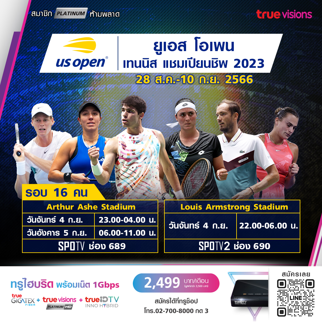 ศึกเทนนิสแกรนด์สแลมสุดยิ่งใหญ่ของปี ยูเอส โอเพ่น เทนนิส แชมเปี้ยนชิพ 2023 ที่มหานครนิวยอร์ค สหรัฐอเมริกา มาถึงในรอบ 16 คนสุดท้าย ร่วมชมและเชียร์นักเทนนิสที่มือระดับโลก ทั้งประเภทชายและหญิง ใครจะคว้าแชมป์เมเจอร์สุดท้ายของปีไปครอง ลุ้นและชมสดๆ เอ็กซ์คลูซีฟ ที่ ทรูวิชั่นส์ เท่านั้น