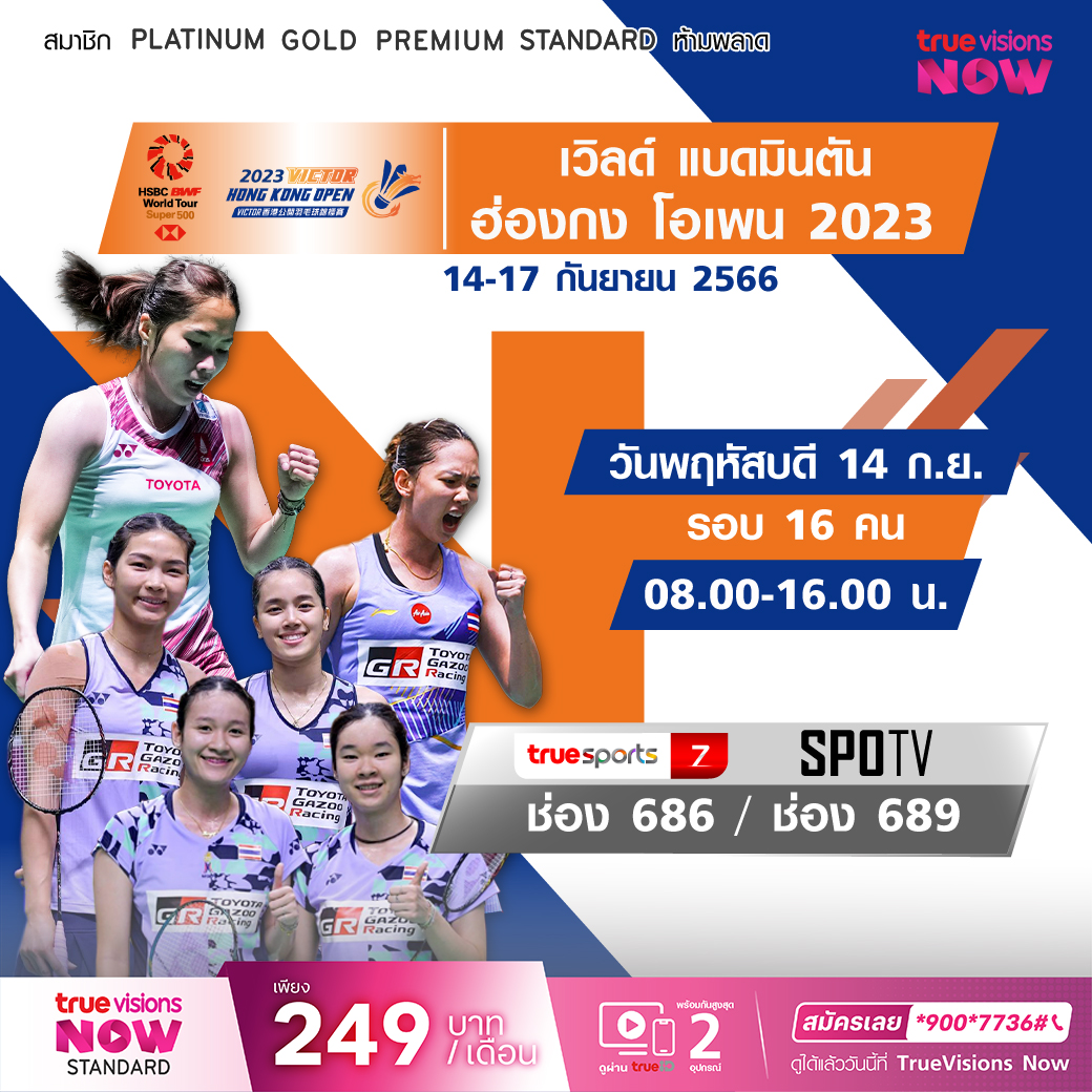 สงครามเพลงตบลูกขนไก่ระดับโลกยังไม่จบ จัดหนักกันต่อเนื่องเพื่อตำแหน่งแชมป์และคะแนนสะสมที่จะชี้ชะตาการคว้าสิทธิ์ไปแข่งโอลิมปิก เกมส์ 2024 เวิลด์ แบดมินตัน สัปดาห์นี้กับรายการ ฮ่องกง โอเพ่น เวิลด์ ทัวร์ ซูเปอร์ 500 ร่วมเชียร์ทีมแบดมินตันไทยรวมใจสู้เพื่อชัยชนะกับคู่แข่งพระกาฬต่างชาติ สด เอ็กซ์คลูซีฟ ชมสด ทาง ทรูวิชั่นส์ ที่เดียวรอบ 16 คน เวลา 08.00 - 16.00 ทางช่อง TS 7 (686) / SPOTV (689)