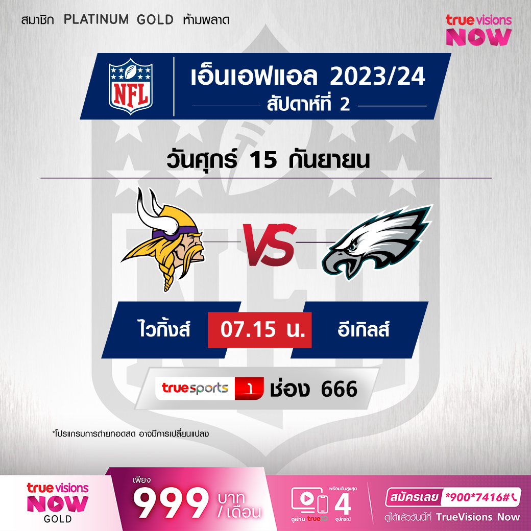 Vikings Vs Eagles เวลา 07.15 ทางช่อง TS 1 (666)