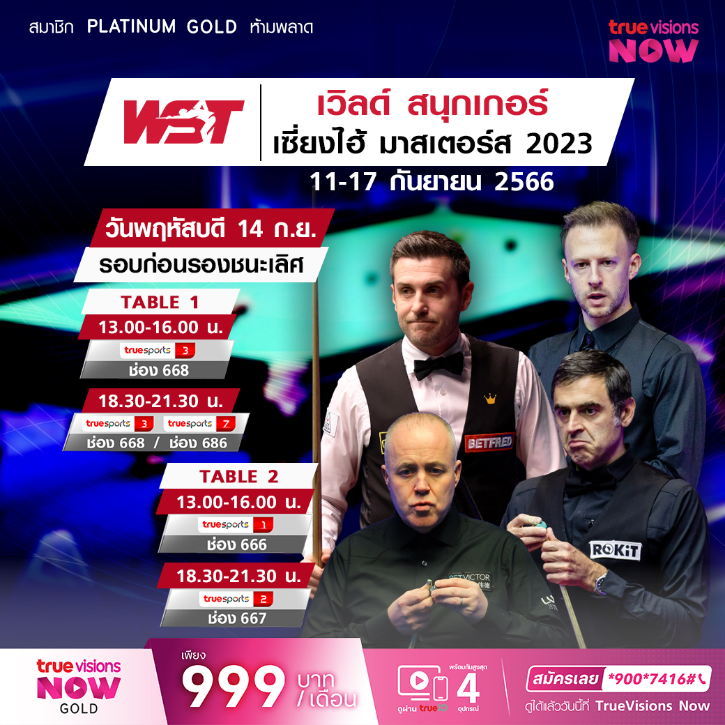 เวิลด์ สนุกเกอร์ ทัวร์ ฤดูกาล 2023/24 ศึกเซี่ยงไฮ้ มาสเตอร์ส ที่มีมือดีๆ ของโลกมาร่วมแข่งขันกันคับคั่ง โดยเฉพาะ 16 อันดับแรกของโลก ใครจะจบด้วยการเป็นแชมป์ ชมรอบต่อรอบ เบรคต่อเบรค เฟรมต่อเฟรม สด เอ็กซ์คลูซีฟ ชมสด ทาง ทรูวิชั่นส์ ที่เดียว