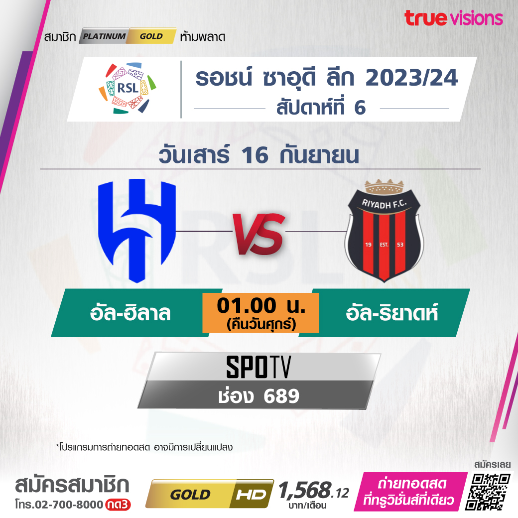 Al-Hilal vs Al-Riyadh เวลา 01.00-03.00 ทางช่อง SPOTV (689)