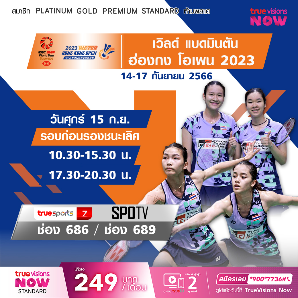 เวิลด์ แบดมินตัน สัปดาห์นี้กับรายการ ฮ่องกง โอเพ่น เวิลด์ ทัวร์ ซูเปอร์ 500 ในรอบก่อนรองชนะเลิศ ร่วมเชียร์นักแบดหญิงคู่ คว้าแชมป์ในรายการนี้ สด เอ็กซ์คลูซีฟ ชมสด ทาง ทรูวิชั่นส์ ที่เดียว