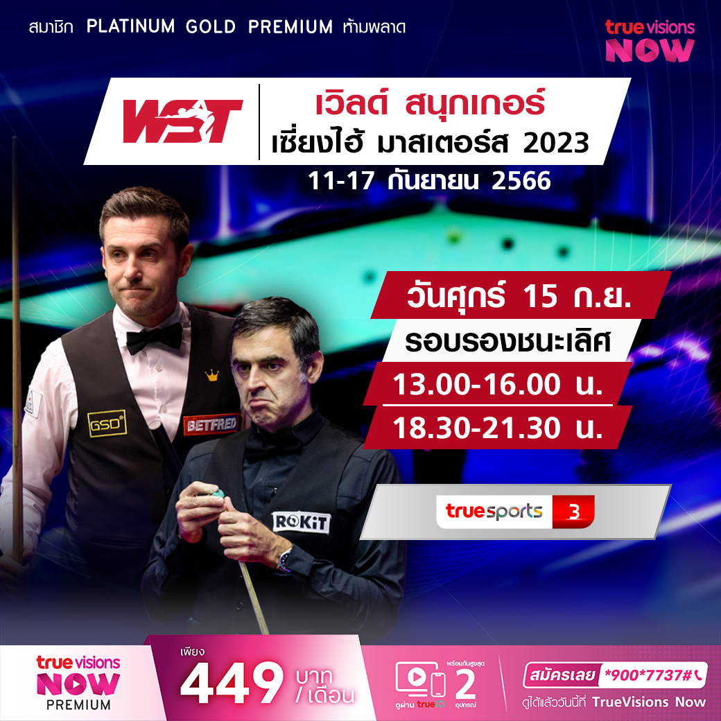 เวิลด์ สนุกเกอร์ ทัวร์ ฤดูกาล 2023/24 ศึกเซี่ยงไฮ้ มาสเตอร์ส ที่มีมือดีๆ ของโลกมาร่วมแข่งขันกันคับคั่ง โดยเฉพาะ 16 อันดับแรกของโลก ใครจะจบด้วยการเป็นแชมป์ ชมรอบต่อรอบ เบรคต่อเบรค เฟรมต่อเฟรม สด เอ็กซ์คลูซีฟ ชมสด ทาง ทรูวิชั่นส์ ที่เดียวรอบรองชนะเลิศ เวลา 13.00 - 16.00 / 18.30 - 21.30 / ทางช่อง TS 3 (668)