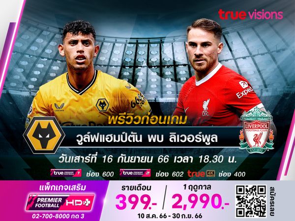 Wolverhampton vs Liverpool เวลา 18:30 - 20:30 ทางช่อง TPF 1(600) / TPF 2 (602)/4K(400)
