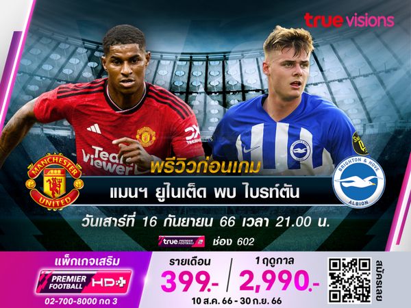 Man Utd vs Brighton เวลา 21:00 - 23:00 ทางช่อง TPF 2 (602)