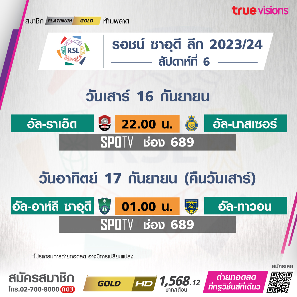 Al-Raed vs Al-Nassr เวลา 22.00-00.00 ทางช่อง SPOTV (689)