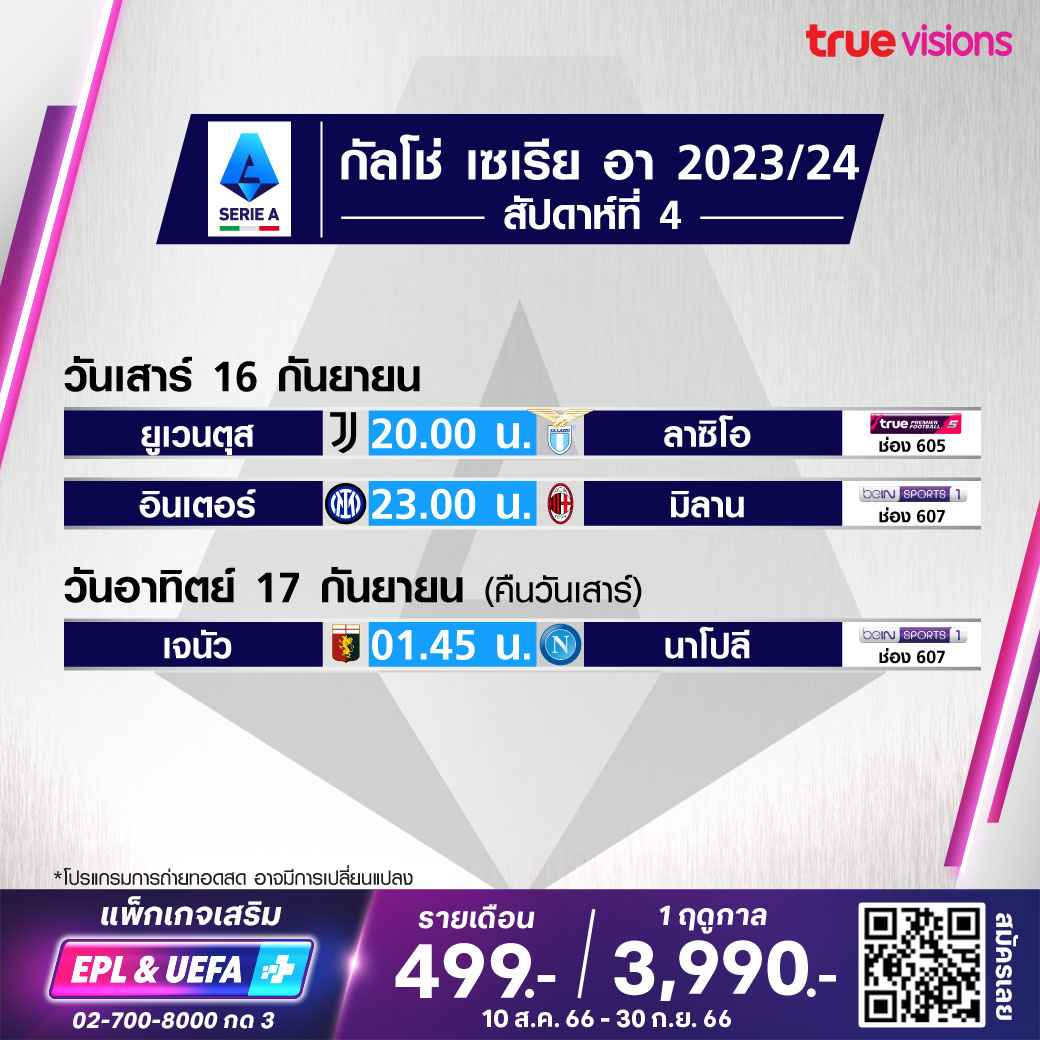 Genoa vs Napoli เวลา 01.45-03.45 ทางช่อง beIN 1 (607)