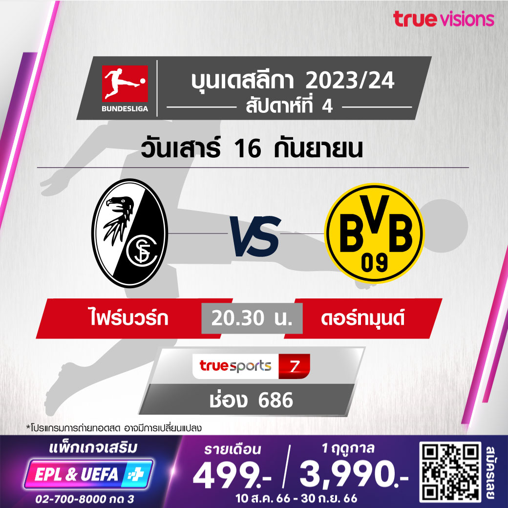 Freiburg vs Dortmund เวลา 20.30-22.30 ทางช่อง TS 7 (686)