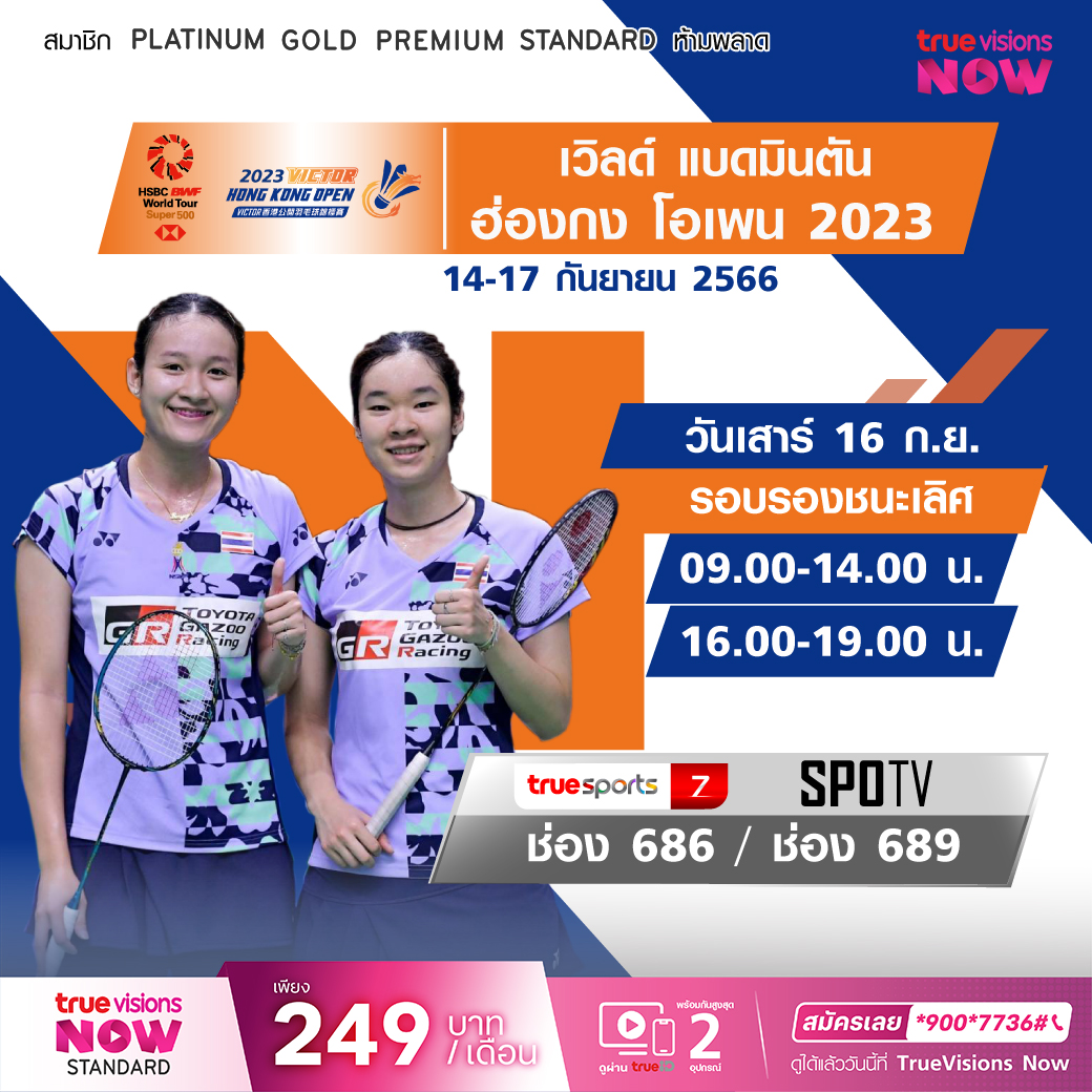 เวิลด์ แบดมินตัน สัปดาห์นี้กับรายการ ฮ่องกง โอเพ่น เวิลด์ ทัวร์ ซูเปอร์ 500 ในรอบรองชนะเลิศ ร่วมเชียร์นักแบดหญิงคู่ มูนา เบญญาภา กับ อันนา นันทกาญจน์ เอี่ยมสอาด คว้าแชมป์ในรายการนี้ สด เอ็กซ์คลูซีฟ ชมสด ทาง ทรูวิชั่นส์ ที่เดียว