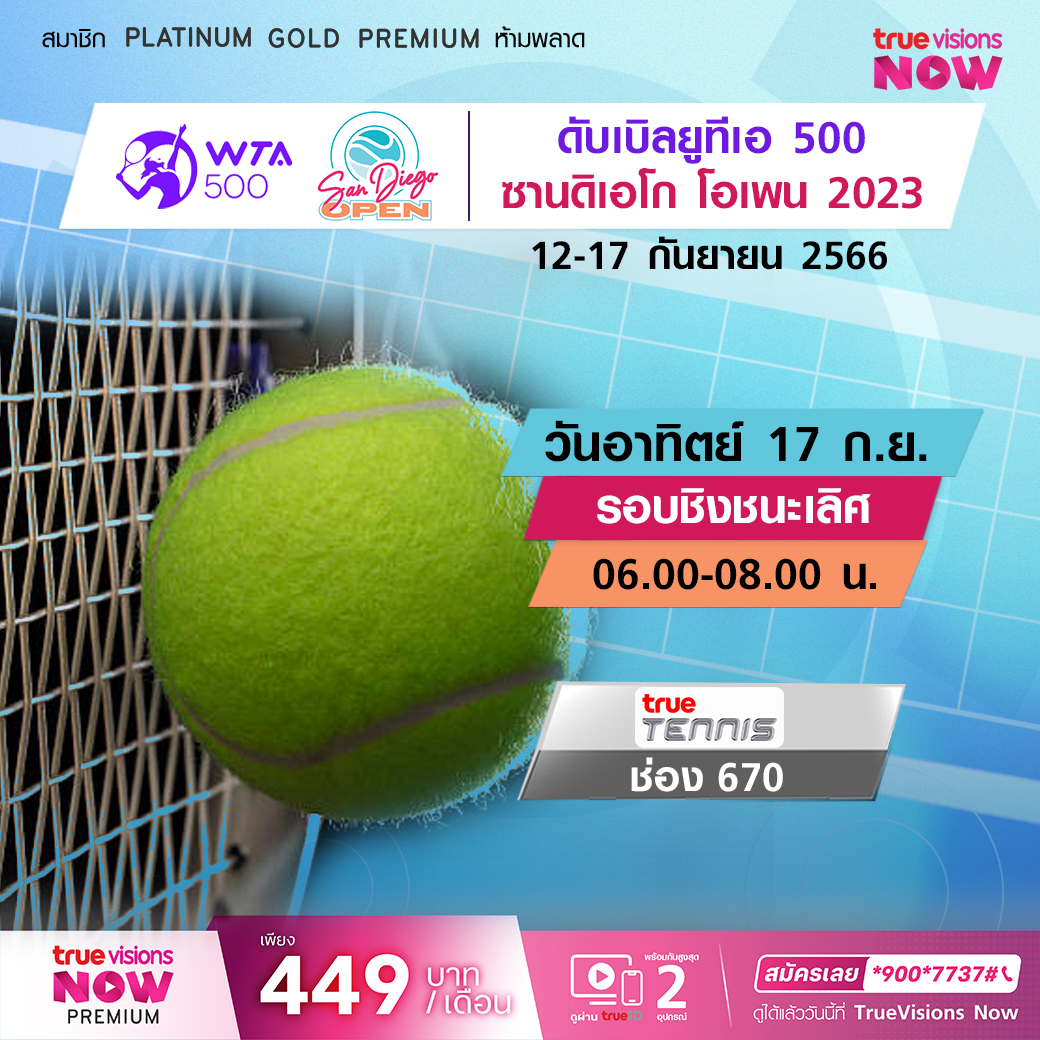 ศึกเทนนิสหญิง ดับเบิ้ลยูทีเอ ทัวร์ รายการระดับ 500 ซีรี่ส์ ซาน ดีเอโก้ โอเพ่น 2023 มือดี มือท็อปของโลก พร้อมจัดเต็มเพื่้อตำแหน่งแชมป์ปีนี้ มันส์แน่นอน สด เอ็กซ์คลูซีฟ ทาง ทรูวิชั่นส์ ที่เดียว