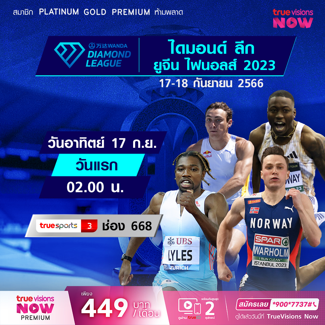 ห้ามพลาด สำหรับแฟนๆ กรีฑาระดับโลก ที่เหล่าบรรดาเทพๆ ของวงการทั้งประเภทลู่และลาน ทั้งแชมป์โลก แชมป์ทวีป แชมป์โอลิมปิก นัดมาประชันความสามารถและแย่งกันเป็นแชมป์ไดมอนด์ ลีก 2023 ที่ใกล้จะจบฤดูกาลแล้ว สัปดาห์นี้ ไปวัดความเก่งกาจกันที่กรุงบรัสเซลส์ ประเทศเบลเยี่ยม สด เอ็กซ์คลูซีฟ ชมสด ทาง ทรูวิชั่นส์ ที่เดียว
