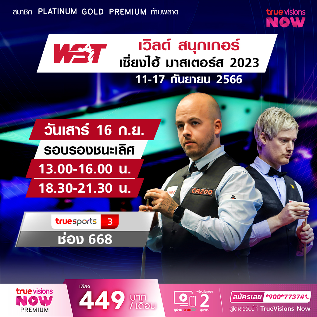 เวิลด์ สนุกเกอร์ ทัวร์ ฤดูกาล 2023/24 ศึกเซี่ยงไฮ้ มาสเตอร์ส ที่มีมือดีๆ ของโลกมาร่วมแข่งขันกันคับคั่ง โดยเฉพาะ 16 อันดับแรกของโลก ใครจะจบด้วยการเป็นแชมป์ ชมรอบต่อรอบ เบรคต่อเบรค เฟรมต่อเฟรม สด เอ็กซ์คลูซีฟ ชมสด ทาง ทรูวิชั่นส์ ที่เดียว