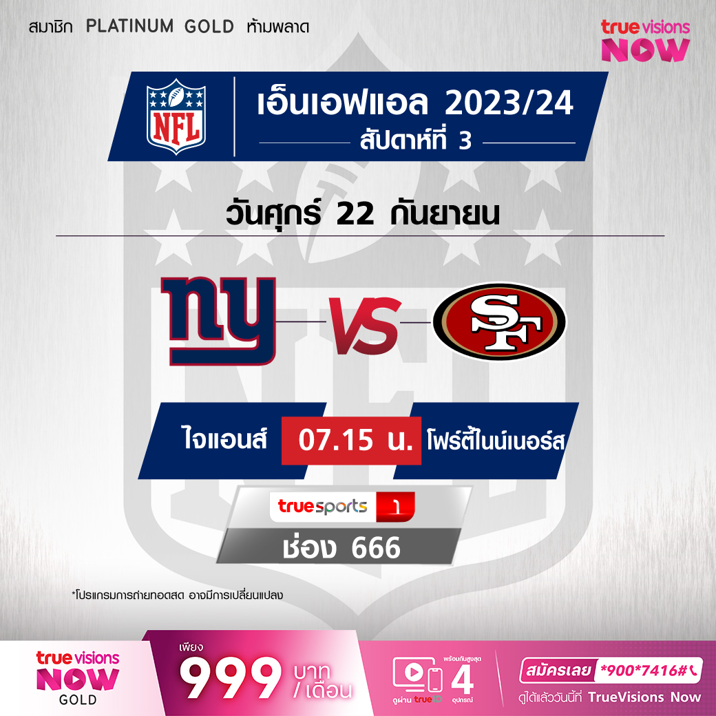 วันศุกร์ 22 ก.ย. Giants Vs 49ERS เวลา 07.15 ทางช่อง TS 1 (666)