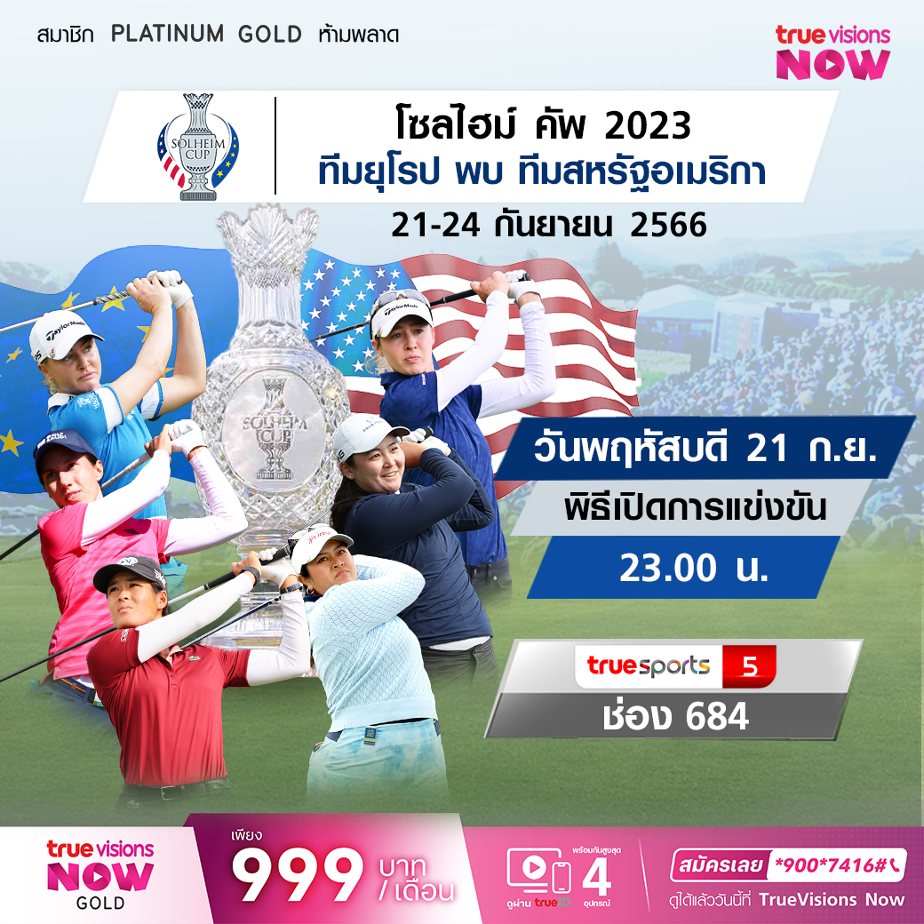 สองปีแห่งการรอคอยสิ้นสุดลงแล้ว กับศึกแห่งศักดิ์ศรีของกอล์ฟประเภททีมหญิง รายการที่ยิ่งใหญ่ เดอะ โซลไฮม์ คัพ 2023 แฟนๆ จะได้สัมผัสกับบรรยากาศและความเร้าใจของการต่อสู้ ของสองทีมจากสองทวีป ยุโรป เจ้าภาพปักหลักลุ้นแชมป์ ที่อันดาลูเซีย ประเทศสเปน พบทีมเยือนอย่างสหรัฐอเมริกา สดครบทุกแมตช์ 3 วันเต็ม ใครจะเป็นแชมป์ สด เอ็กซ์คลูซีฟ ชมสด ทาง ทรูวิชั่นส์ ที่เดียว