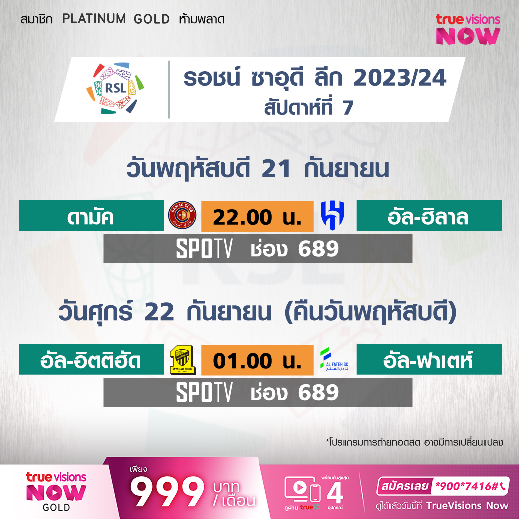 Al-Ittihad vs Al-Fateh เวลา 01.00-03.00 ทางช่อง SPOTV (689)