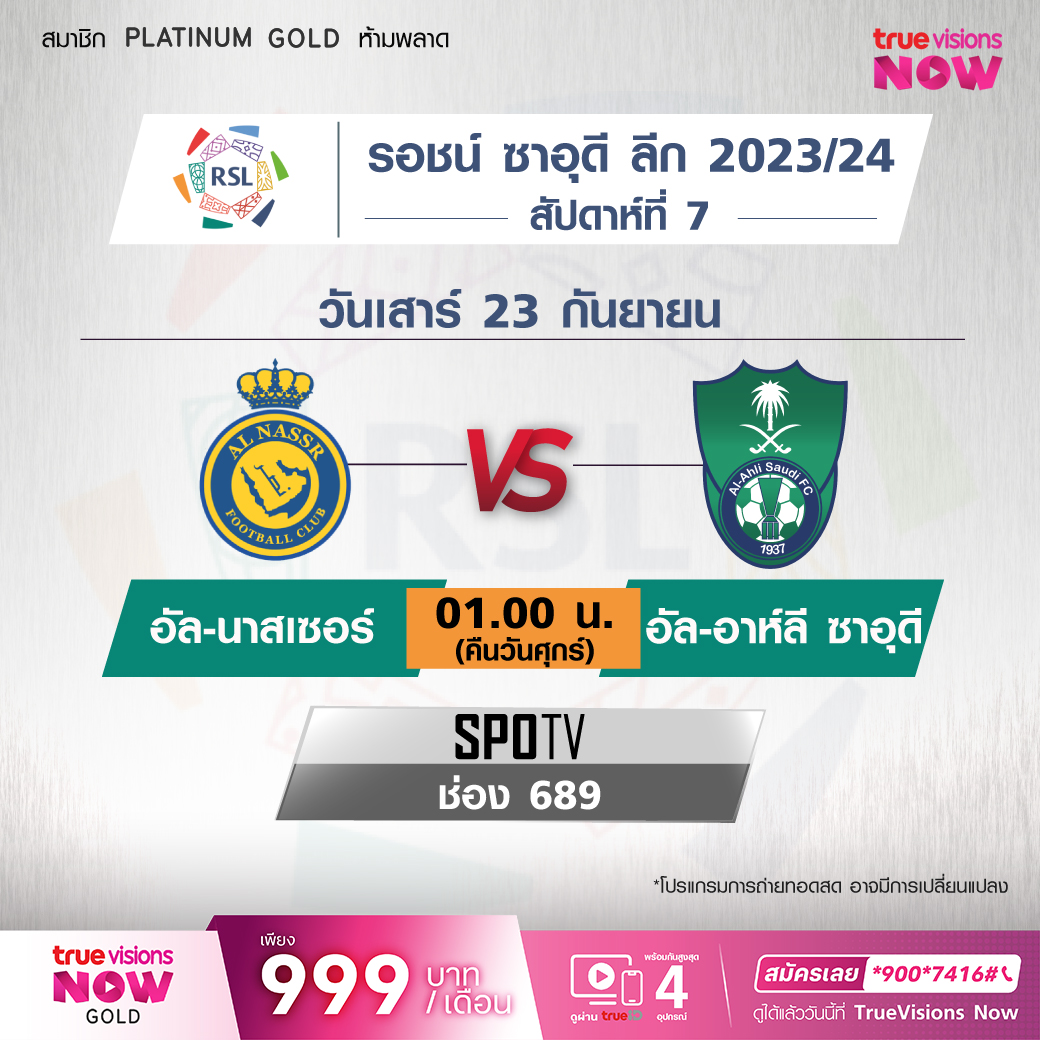 Al-Nassr vs Al-Ahli Saudi เวลา 01.00-03.00 ทางช่อง SPOTV (689)