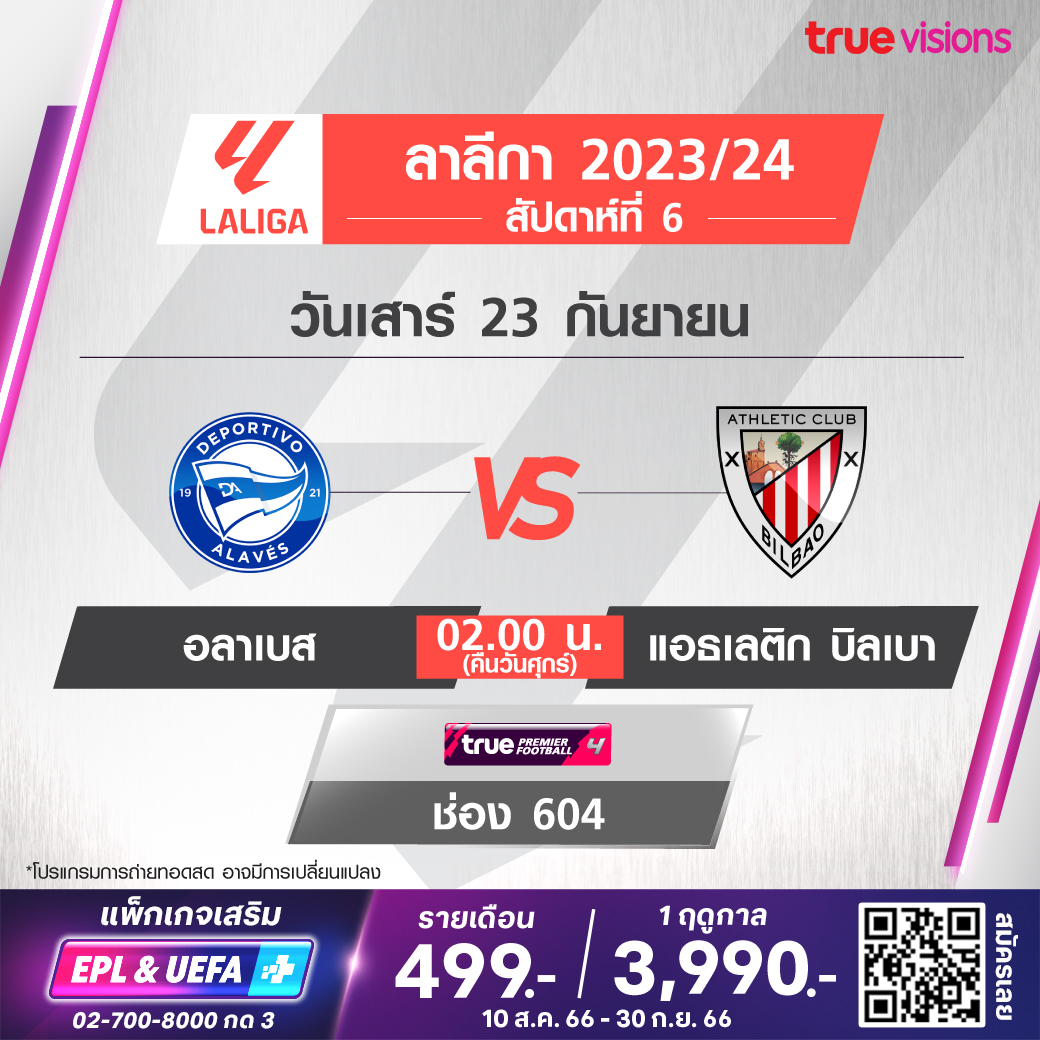 Alaves vs Athletic เวลา 02.00-04.00 ทางช่อง TPF 4 (604)