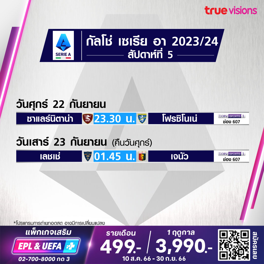 Lecce vs Genoa เวลา 01.45-03.45 ทางช่อง beIN 1 (607)